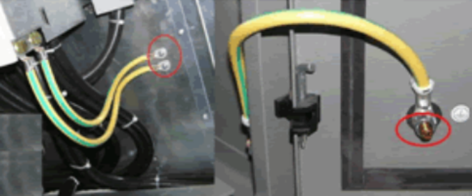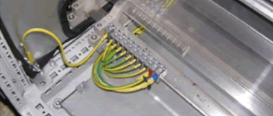 保護(hù)接地連續(xù)性利用有效接線來(lái)保證,如圖1-6所示。柜內(nèi)任意兩個(gè)金屬部件通過(guò)螺釘連接時(shí)如有絕緣層均應(yīng)采用相應(yīng)規(guī)格的接地墊圈,而且要注意將墊圈齒面接觸零部件表面,或者破壞絕緣層。門上的接地處要加“抓墊”或“菊花墊“,防止因?yàn)橛推岬膯?wèn)題而接觸不好,而且連接線要盡量短。
